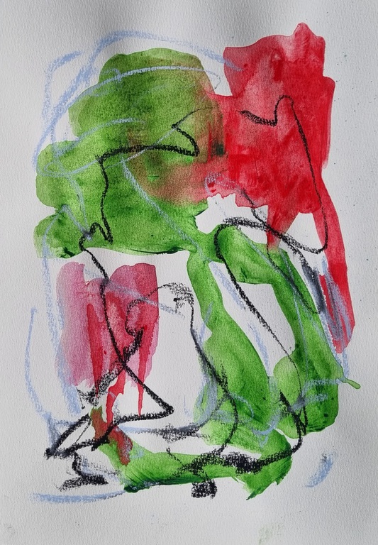 Chaque dessin, chaque toile s'inscrivent entre esquisses et oeuvres finies, puisque celles-ci ne sont des étapes qui révèlent et imprègnent les suivantes.